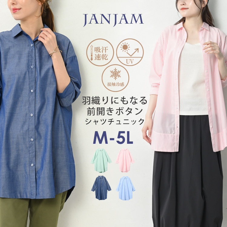 シャツチュニック 大きいサイズ レディース メール便送料350円 7分袖 前開きボタン ラウンドヘム トップス M LL 3L 4L 5L