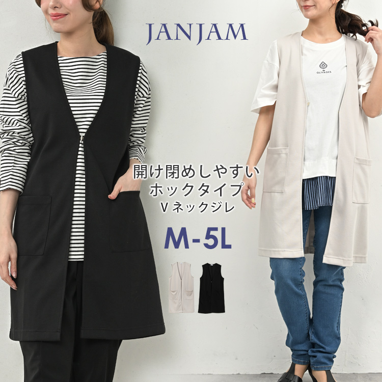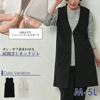 ジレ 大きいサイズ レディース Vネック 前開きデザイン ホック ポケット スリット トップス M LL 3L 4L 5L