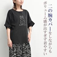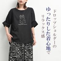 【メール便対応】立体感のある袖タックが映える猫プリントTシャツ。