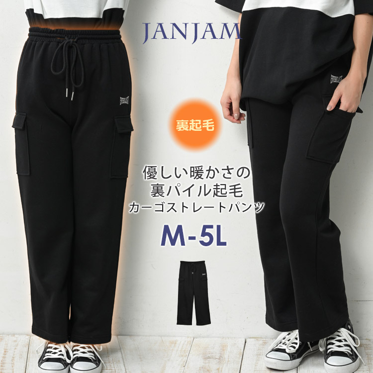 カーゴストレートパンツ 大きいサイズ レディース ロング丈 ウエストゴム 裏起毛 ボトムス M LL 3L 4L 5L