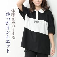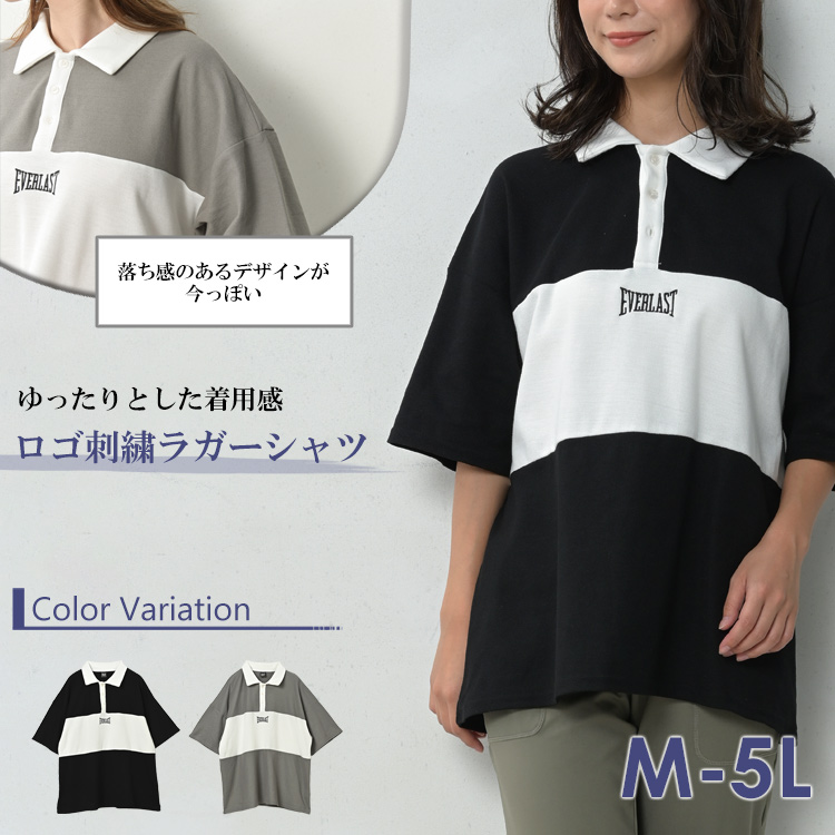 ラガーシャツ 大きいサイズ レディース 5分袖 バイカラー切り替え 刺繍ロゴ トップス M LL 3L 4L 5L