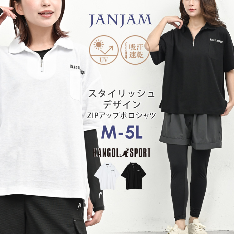 ZIPポロシャツ 大きいサイズ レディース メール便送料350円 半袖 胸ポケット UVカット 吸汗速乾 トップス KANGOL M LL 3L 4L 5L