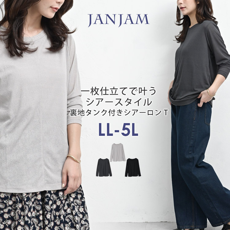 タンクトップ付きシアーTシャツ 大きいサイズ レディース メール便送料350円 長袖 一体型 重ね着風 ロンT トップス LL 3L 4L 5L