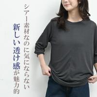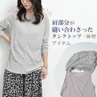 【メール便対応】肩部分が縫われた裏地タンク付きシアーロングTシャツ。