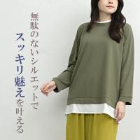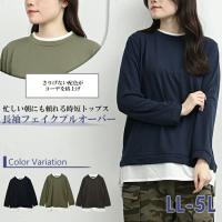 重ね着風プルオーバー 大きいサイズ レディース メール便送料350円 フェイク 長袖 スリット カットソー トップス LL 3L 4L 5L