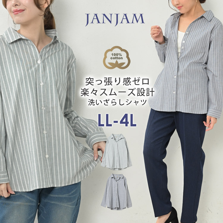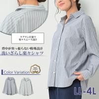 ストライプシャツ 大きいサイズ レディース メール便送料無料 長袖 前開きボタン 洗いざらし cotton100 トップス LL 3L 4L