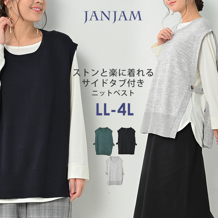 ニットベスト 大きいサイズ レディース サイドタブ サイドオープン ノースリーブ トップス LL 3L 4 送料無料※沖縄/北海道対象外