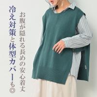 【送料無料※沖縄/北海道対象外】冷え対策と体型カバーも◎サイドタブ付きニットベスト。