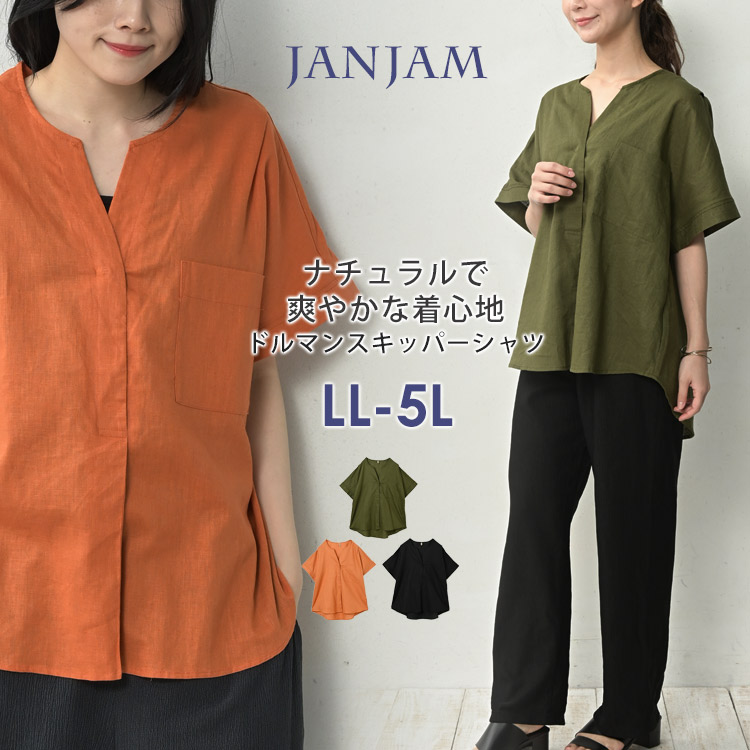 スキッパーシャツ 大きいサイズ レディース メール便送料350円 5分袖 ドルマンスリーブ Vネック トップス LL 3L 4L 5L