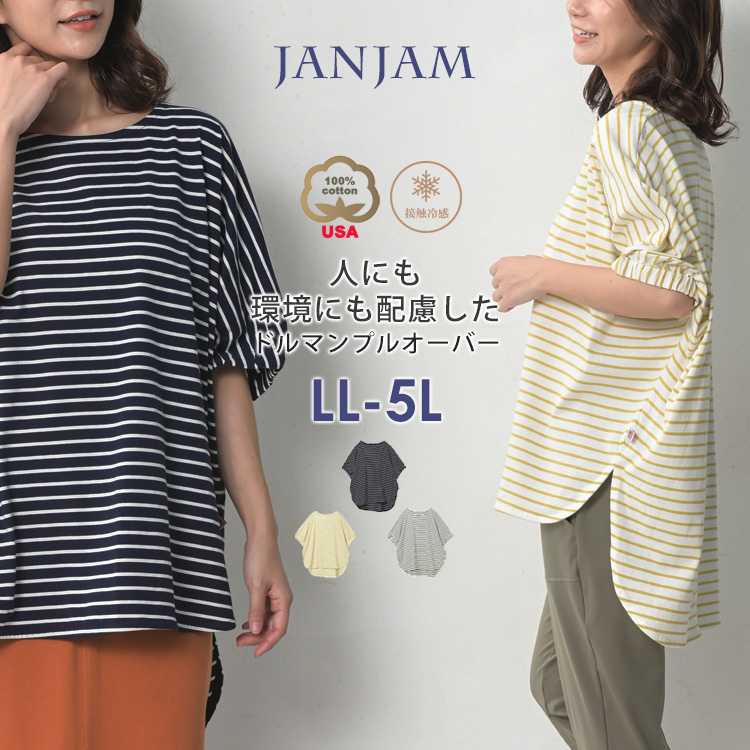 ドルマンプルオーバー 大きいサイズ レディース メール便送料350円 5分袖 USAコットン UVカット 接触冷感 トップス cotton100 LL 3L 4L 5L