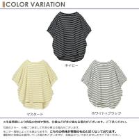 【メール便送料無料】ふんわりシルエットのボーダー柄ドルマンプルオーバー。
