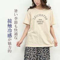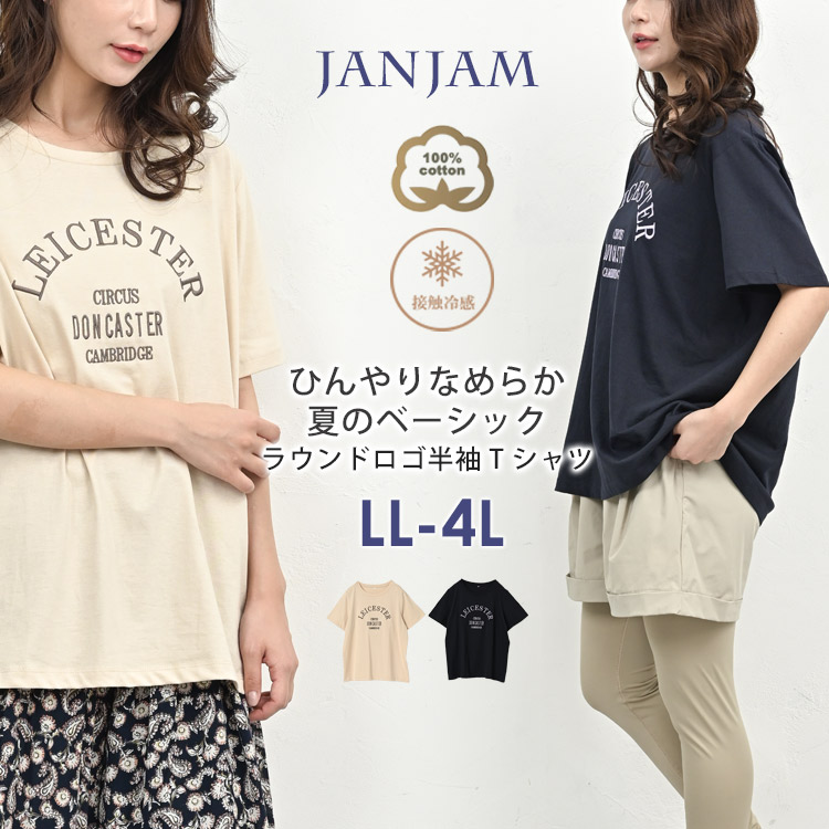 ラウンドロゴTシャツ 大きいサイズ レディース メール便送料350円 半袖 Uネック 接触冷感 カットソー トップス cotton100 LL 3L 4L