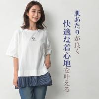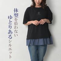 重ね着風チュニック 大きいサイズ レディース メール便送料350円 5分袖 ストライプ切り替え トップス cotton100 LL 3L 4L 5L