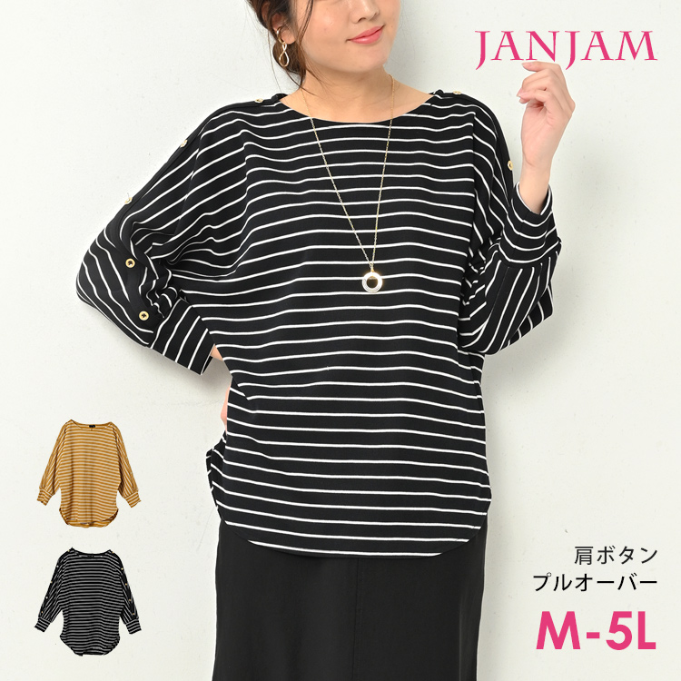 ドルマンプルオーバー 大きいサイズ レディース メール便送料350円 長袖 肩ボタンデザイン ボーダー柄 トップス M LL 3L 4L 5L