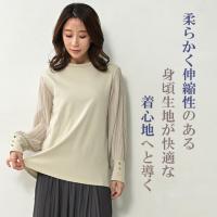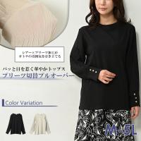 プルオーバー 大きいサイズ レディース メール便送料350円 プリーツシフォン切り替え 長袖 カットソー トップス M LL 3L 4L 5L