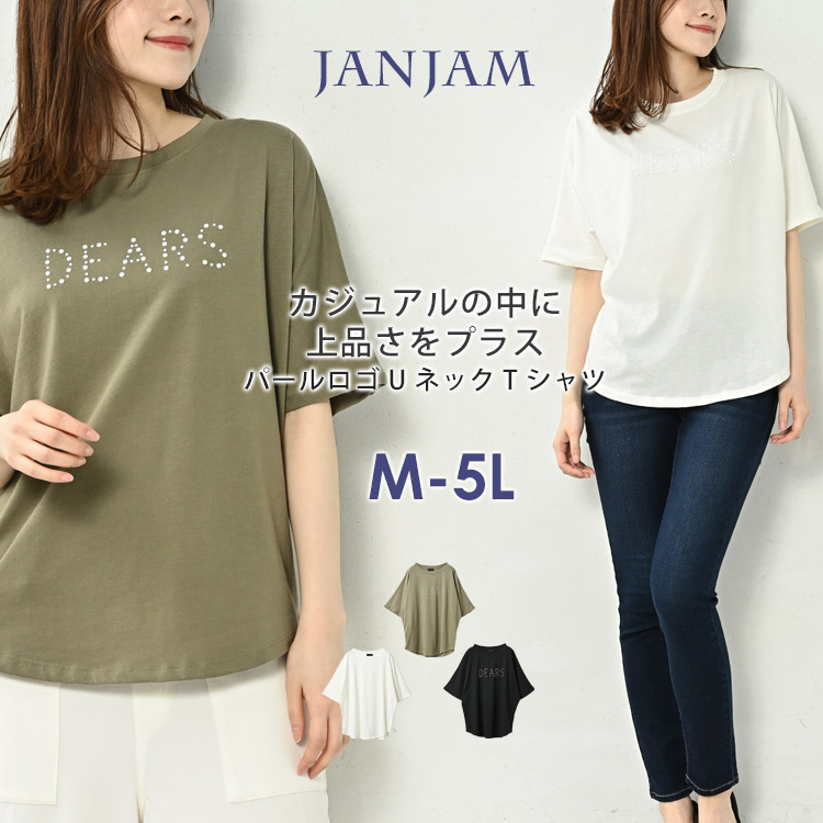 ドルマンTシャツ 大きいサイズ レディース メール便送料350円 パールロゴ 半袖 ビーズ Uネック トップス M LL 3L 4L 5L