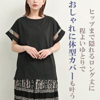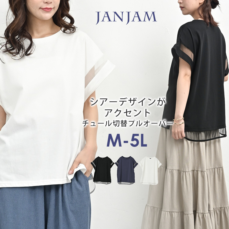 チュール切替プルオーバー 大きいサイズ レディース メール便送料350円 半袖 透け感 カットソー トップス M LL 3L 4L 5L