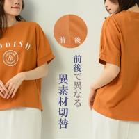 ゆるTシャツ 大きいサイズ レディース メール便送料350円 ロゴプリント 5分袖 Uネック 切り替え トップス M LL 3L 4L 5L