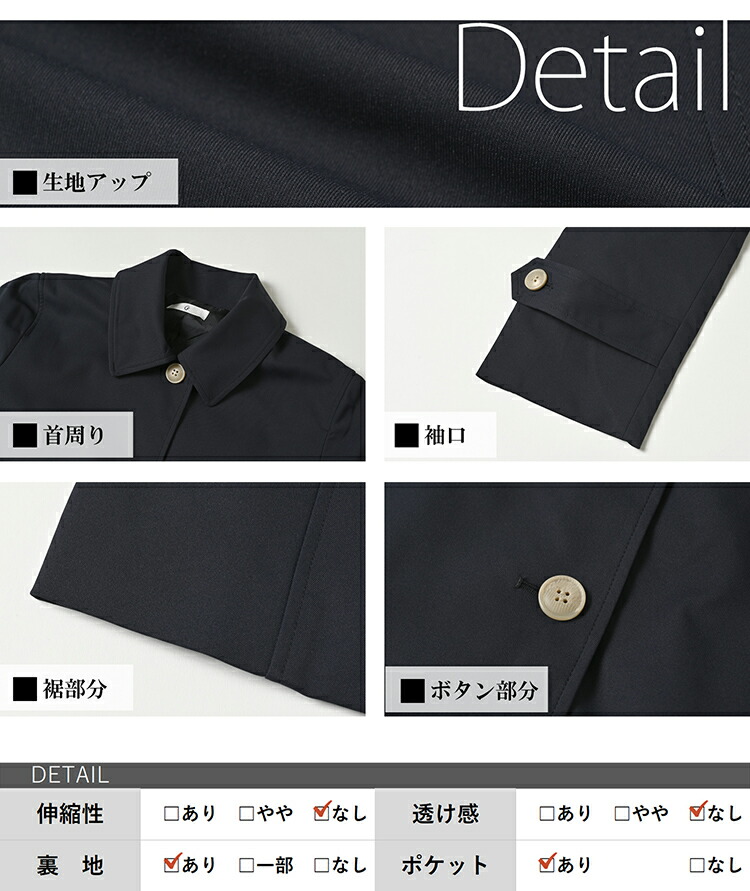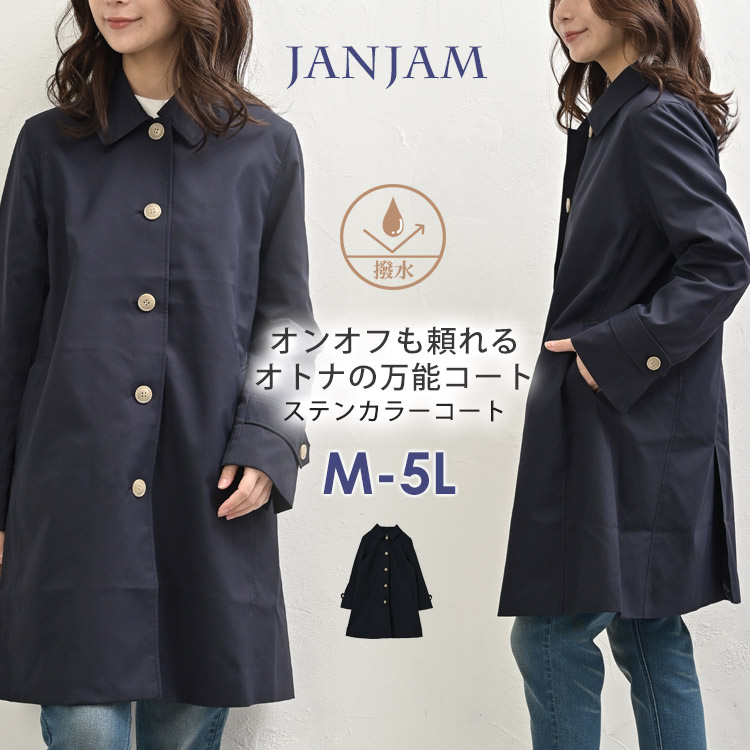 ステンカラーコート 大きいサイズ レディース 長袖 前開きボタン 撥水 防花粉 アウター 楽tec M LL 3L 4L 5L 送料無料※沖縄/北海道対象外