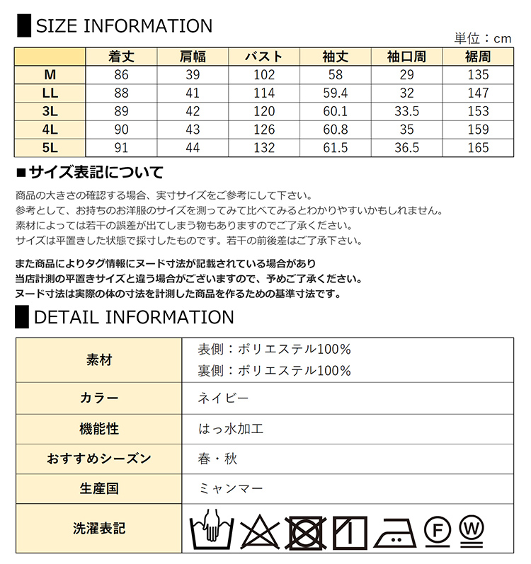 XXXXL 2XL 3XL 4XL 9号 13号 15号 17号 19号 春 秋 紺 長袖アウター 30代 40代 50代 春服 秋服 春物 秋物 2025 撥水加工 水際 防花粉 楽tec カジュアル キレカジ おしゃれ きれいめ ゆったりサイズ ぽっちゃり女子 プラスサイズ