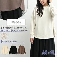 ラウンドヘムプルオーバー 大きいサイズ レディース 長袖 ゆるシルエット Uネック カットソー トップス M LL 3L 4L 送料無料※沖縄/北海道対象外