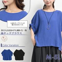 袖タックブラウス 大きいサイズ レディース メール便送料350円 半袖 シャツ UVカット トップス M LL 3L 4L 5L