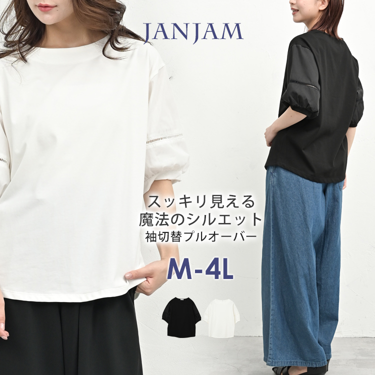 【メール便対応】すっきり見える魔法シルエット袖切替プルオーバー。