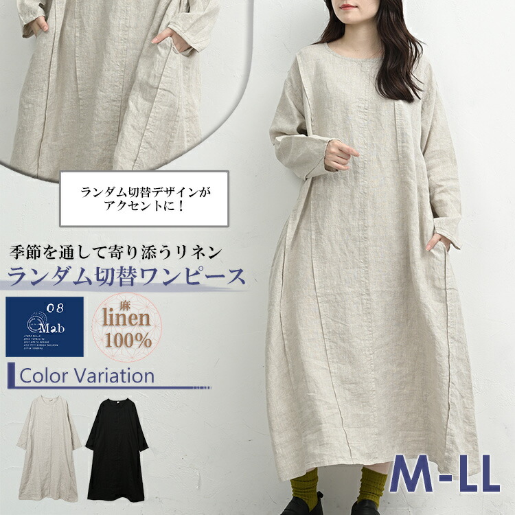 XL M L LL 9号 11号 13号 春 秋 冬 黒 ベージュ ロング丈ワンピース 30代 40代 50代 秋新作 春服 秋服 冬服 春物 秋物 冬物 2025 linen100 体型カバー 08mab ナチュラル おしゃれ きれいめ ゆったりサイズ ぽっちゃり女子 プラスサイズ