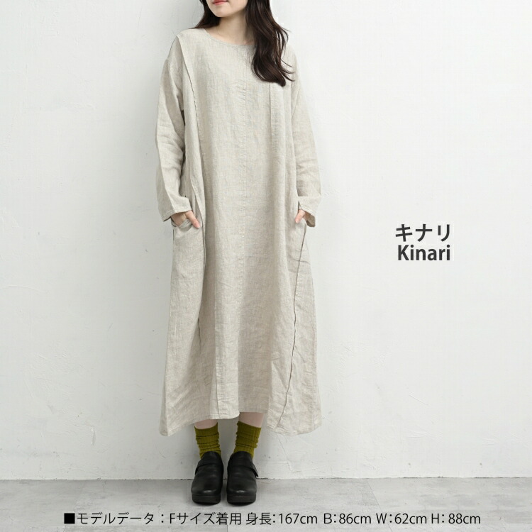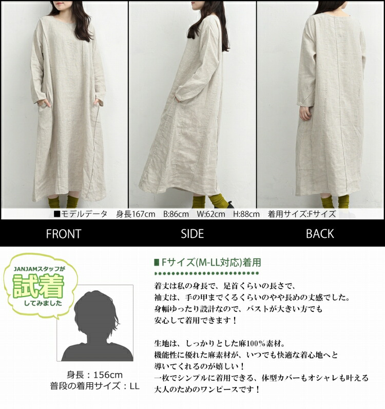 ランダム切替ワンピース 大きいサイズ レディース 長袖 ロング丈 ナチュラル 08mab linen100 F 送料無料