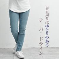 【送料無料※沖縄/北海道対象外】バックウエストゴムでスリムシルエットが生まれるデニムパンツ。脚長効果にも期待できる程よい10分丈。