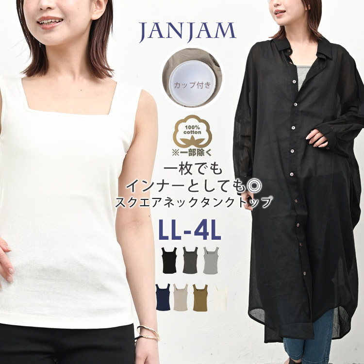 カップ付きタンクトップ 大きいサイズ レディース メール便送料無料 スクエアネック 無地 ブラトップ インナー トップス LL 3L 4L