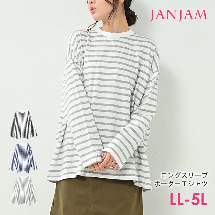 ボーダーTシャツ 大きいサイズ レディース メール便送料350円 長袖 Uネック カットソー トップス LL-3L 4L-5L