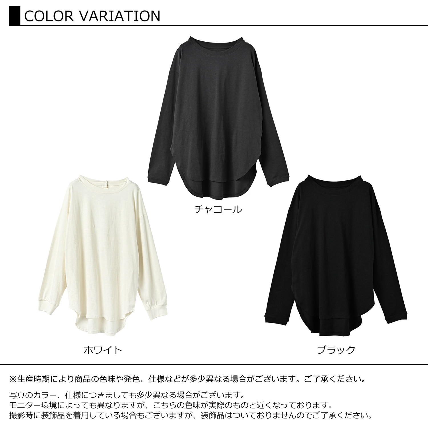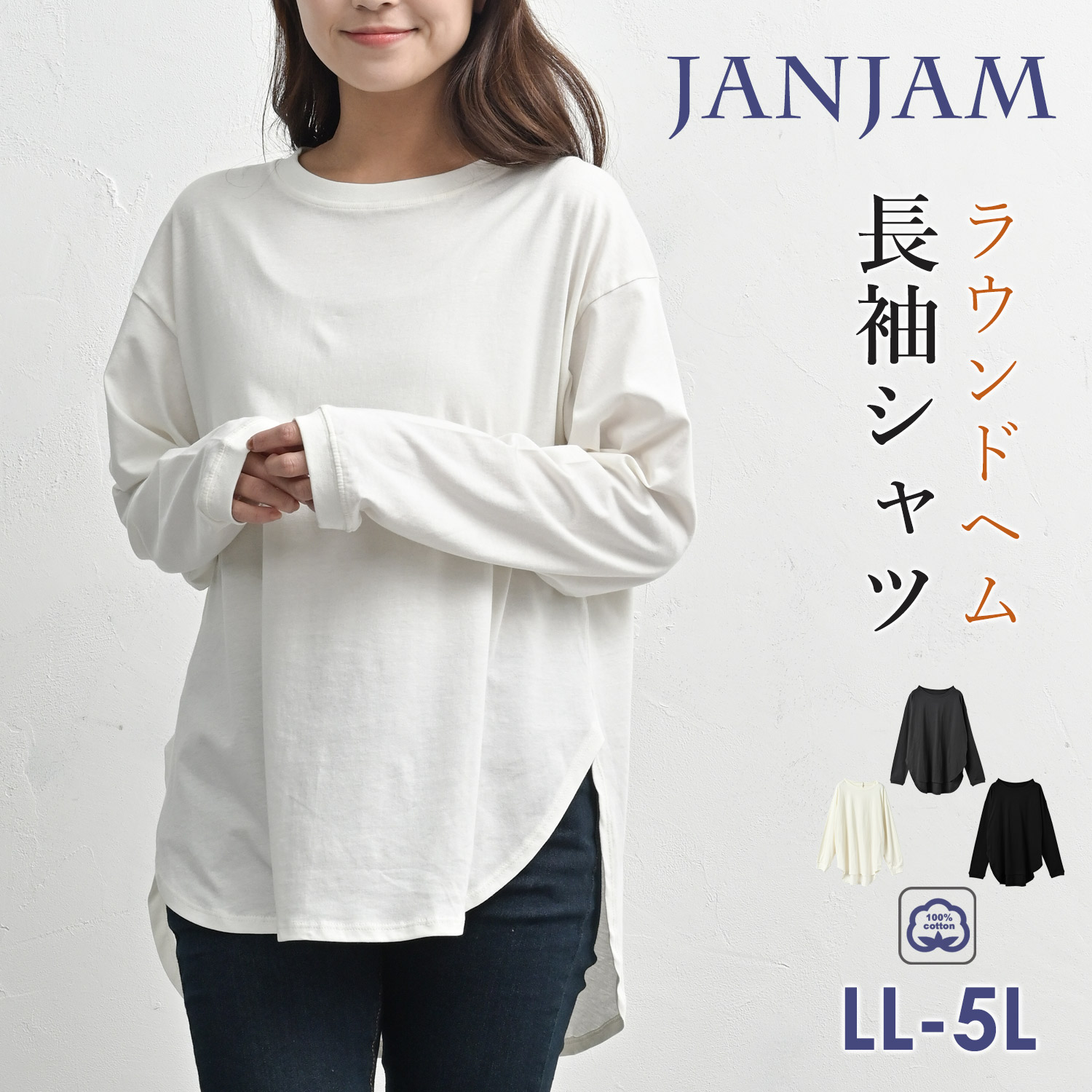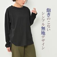 【メール便対応】ヒップまで優しくカバーするラウンドヘムデザインの長袖Tシャツ。