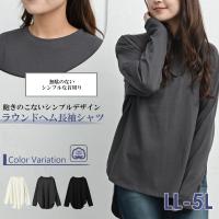 Tシャツ 大きいサイズ レディース メール便送料350円 長袖 ラウンドヘム 無地 カットソー トップス LL-3L 4L-5L