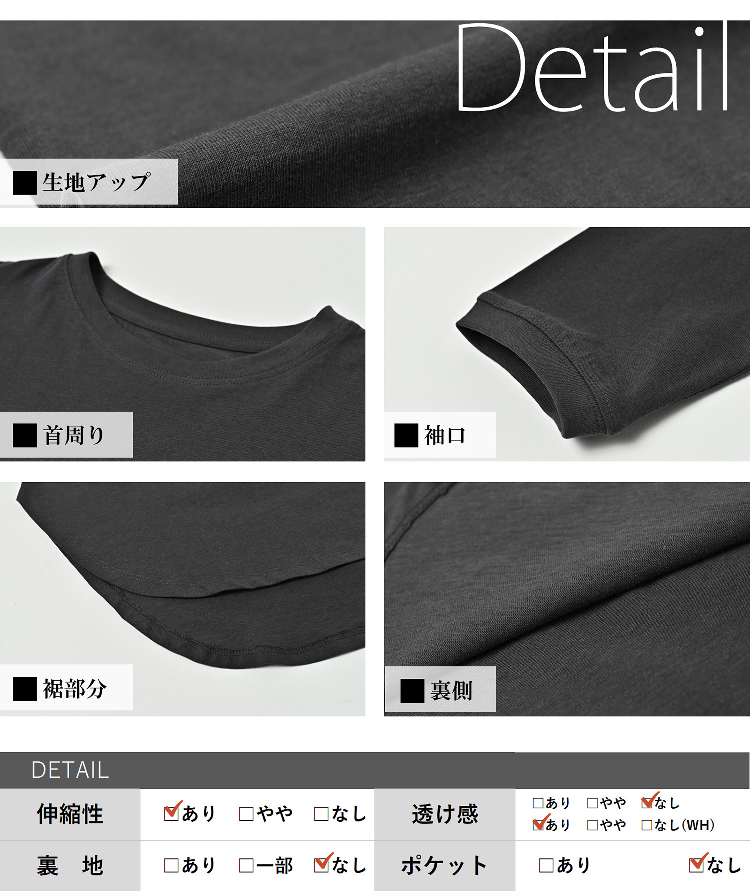 透け感/透けない(ホワイトは透ける)