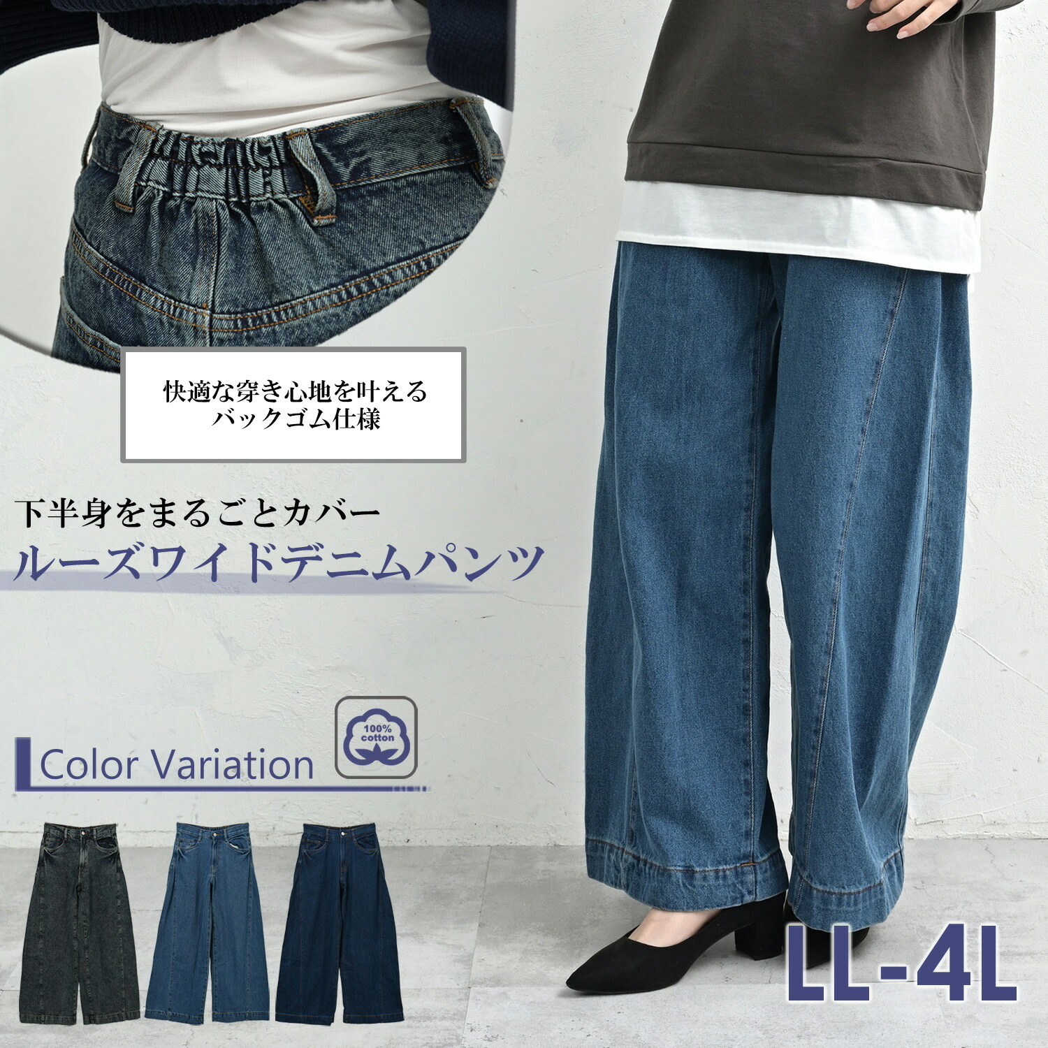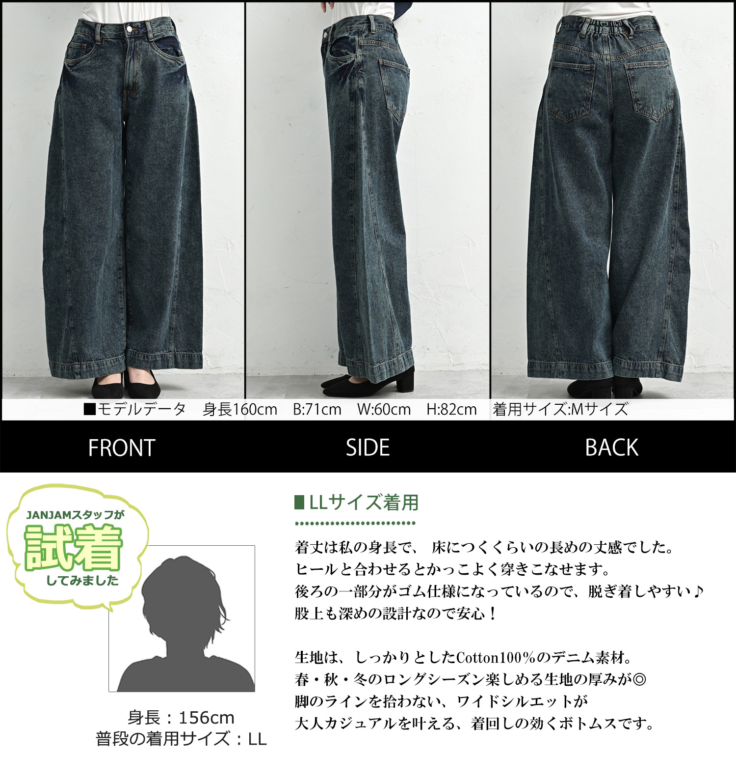 選ぶのをためらってしまいがちですが、このワイドパンツはLL〜5Lサイズの方の体型に合わせたゆったり設計。