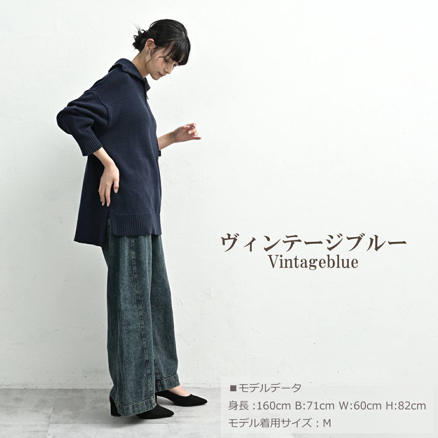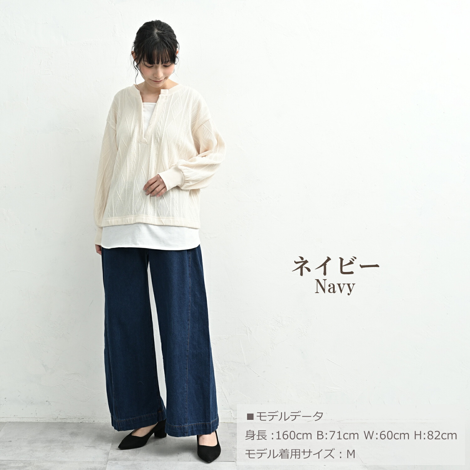 ヒップと太もも周り:脚のラインを一切拾わない、贅沢なワイドシルエットに仕上げました。