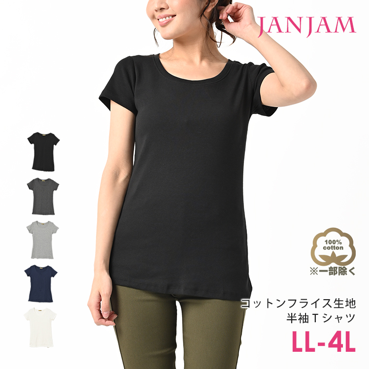 Tシャツ 大きいサイズ レディース メール便送料350円 半袖 コットンフライス Uネック 無地 トップス cotton100 LL 3L 4L