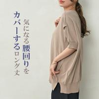 【メール便送料無料】袖脇オープンラウンドネック5分袖サマーニット。