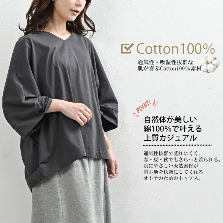 【メール便対応】ゆったりとストレスフリーな着心地の7分袖ドルマンTシャツ。
