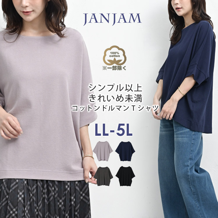 ドルマンTシャツ 大きいサイズ レディース メール便送料350円 5分袖 ワッフル カットソー トップス cotton100 LL-3L 4L-5L