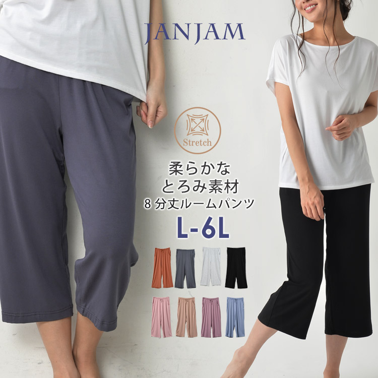 リラックスパンツ 大きいサイズ レディース メール便送料350円 クロップドパンツ ウエストゴム ルームウェア 部屋着 ボトムス L LL 3L 4L
