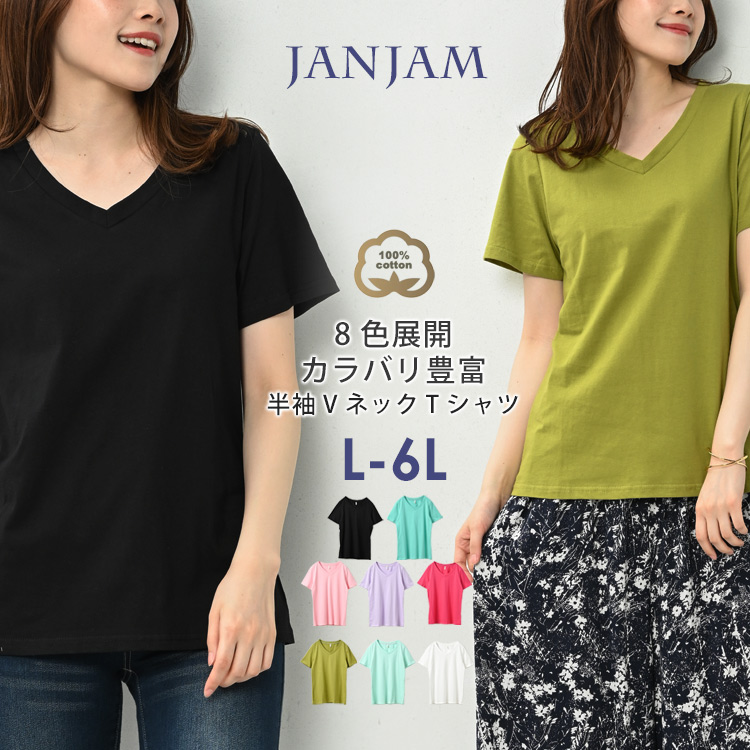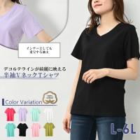 Tシャツ 大きいサイズ レディース メール便送料無料 半袖 Vネック 無地 カットソー トップス cotton100 L LL 3L 4L 5L 6L