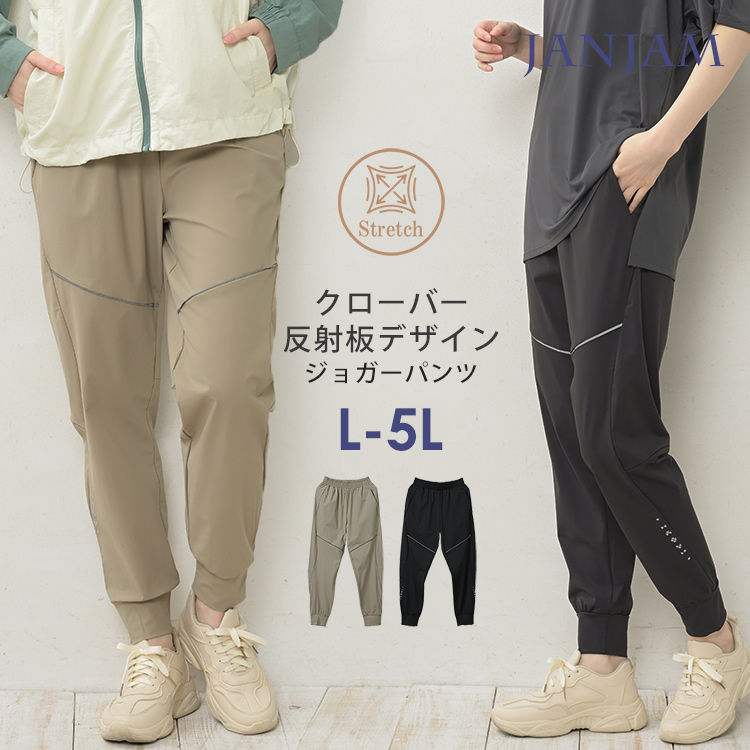 ジョガーパンツ 大きいサイズ レディース メール便送料無料 ウエストゴム クローバー反射材 スポーツウェア ボトムス L LL 3L 4L 5L