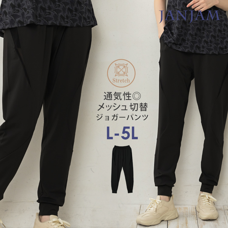 ジョガーパンツ 大きいサイズ レディース メール便送料無料 ウエストゴム メッシュ切替 スポーツウェア ボトムス L LL 3L 4L 5L
