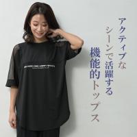 Tシャツ 大きいサイズ レディース メール便送料無料 半袖 ロゴプリント メッシュ袖 カットソー スポーツウェア トップス L LL 3L 4L 5L
