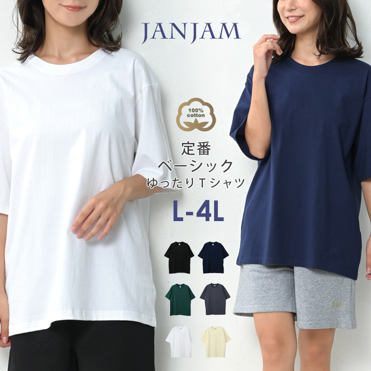 ゆったりTシャツ 大きいサイズ レディース メール便送料350円 5分袖 無地 カラバリ豊富 コットンTシャツ cotton100 トップス L LL 3L 4L
