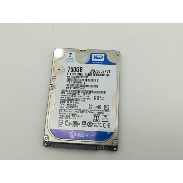 【中古】W.D. Blue WD7500BPVT 750GB/5400rpm/3GbpsSATA/9.5mm/8M【福岡筑紫】保証期間1週間
