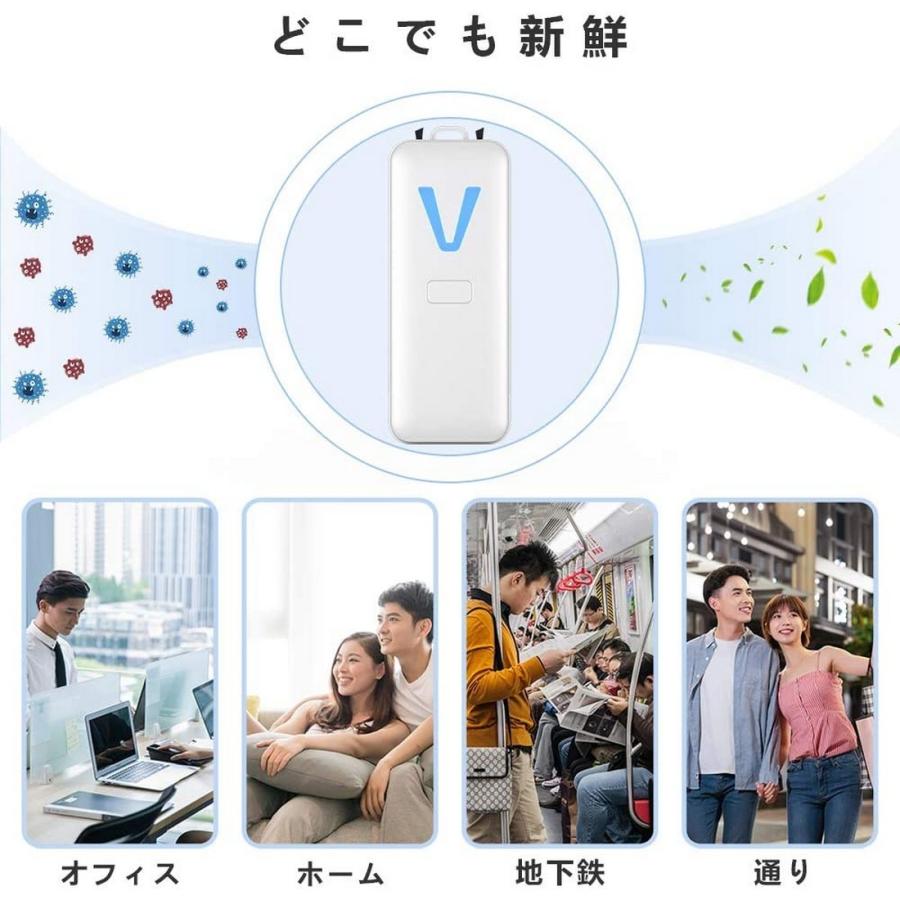 空間除菌機 V型空気清浄機 ポータブル空気浄化機 首掛けタイプ ミニ小型 マイナスイオン PM2.5 除菌 脱臭 花粉症対策 静音 部屋 車載 オフィス アウトドア