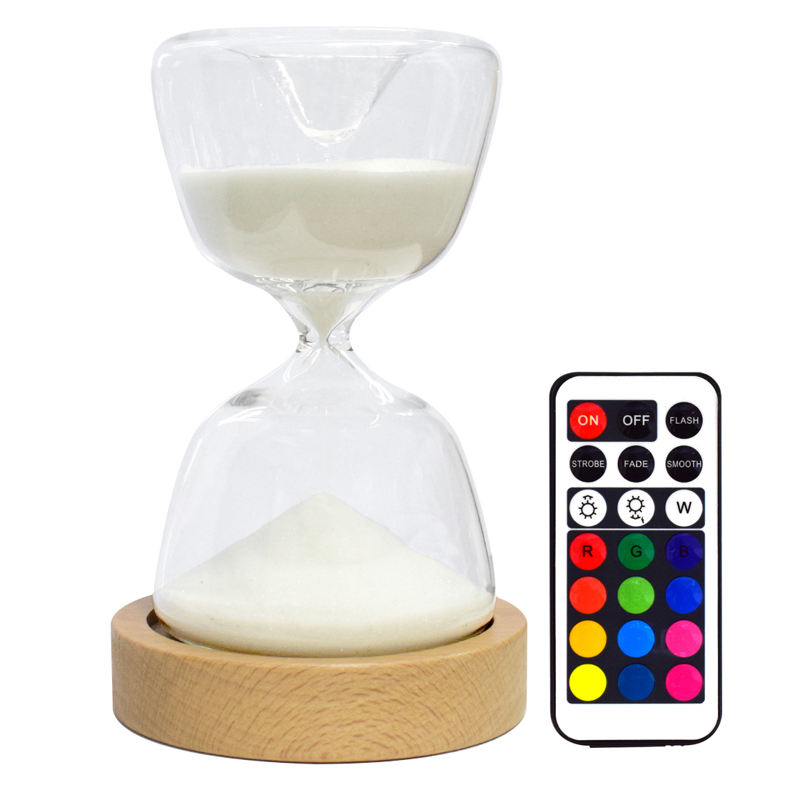 | ・サイズ:9.8(直径)*15.5(高さ)cm ・重さ:350g ・入力規格:5V/500mAh ・バッテリー容量:1000mAh ・パッケージ内容:砂時計ライト*1、木製土台*1、USBケーブル*1、リモコン(電池入り)*1 【 幻想的な砂時計ライト 】 ・優しい光が溢れる、幻想的な砂時計ライト。 ・ころんとしたフォルムが可愛い15分計。木製の台座にはライトが内蔵されており、優しい光と白い砂の織りなす幻想的なムードをお楽しみいただけます。 ・流れる砂を眺めて、ゆったりとした時の流れを感じられる商品です。 【 砂が積もるにつれ、淡く柔らかくなる光の魅力 】 ・最初は明るく、砂が落ちきればふんわりとした間接照明に。 ・15分かけて砂が落ちていくのと同時に、光の変化をお楽しみいただけます。 ・ライトを消灯したままでも普通の砂時計としてご使用いただけます。 【 USB電源で様々な場所に設置可能 】 ・USBケーブルが付属しているので、パソコンやコンセントプラグ(別途変換アダプタが必要)に差し込んで使用が可能です。 ・PCの周りや寝室など、様々な場所に設置できます。木製の台座にLEDライトが内蔵されています。その上に砂時計を置いてお使いください。 【 便利なリモコン付き 】 ・リモコンがついているので、離れた場所からライトの色を変更したり、電源の入切りができます。 【 砂時計と夜間照明 】 ・ガラスでできた砂時計とライトが1つになり、様々なテイストのお部屋にマッチします。 ・ライトの色は12色に変更できるほか、4つの点灯モードをお楽しみいただけます。 【 ご注意 】 ※本製品はガラス製の為、お取扱いにご注意ください。 ※本製品の特性上ガラス表面の細かな凹凸やキズ、不純物等の混入が見られる場合がありますが、使用上の問題はございません。 ※USBケーブルやプラグの破損・故障している場合は、ライトを点灯したりUSBケーブルをコンセントに接続しないでください。 ※USBケーブルが破損した場合は、再利用せずに破棄してください。 ※小さなお子さまの手の届かない場所で使用するか、触ったりしないようにしてください。 ※リモコンの電池はCR2025が使用可能です。 ※製品を廃棄する場合は、各自治体の指示に従って処分してください。 ※砂時計の時間はあくまで目安です。砂時計の性質上正確な時間の計測には向いていません。 ※静電気によりガラスに砂が付着したり、砂が途中で止まることがあります。その時は軽くゆすり落としてご使用ください。 ※高温多湿の環境下または直射日光のあたる場所でのご使用はお控えください。 |